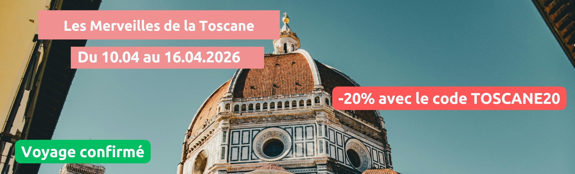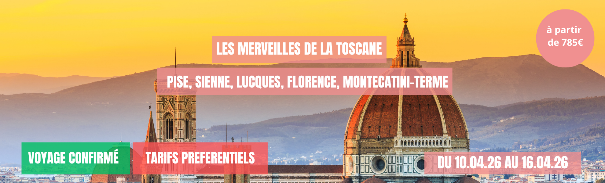 Aperçu rapide Réserver Vendredi 10/04/2026 Les merveilles de la Toscane✔️CONFIRMÉ Prix de vente conseillé : Ancien prix : Maintenant : A partir de €740,00