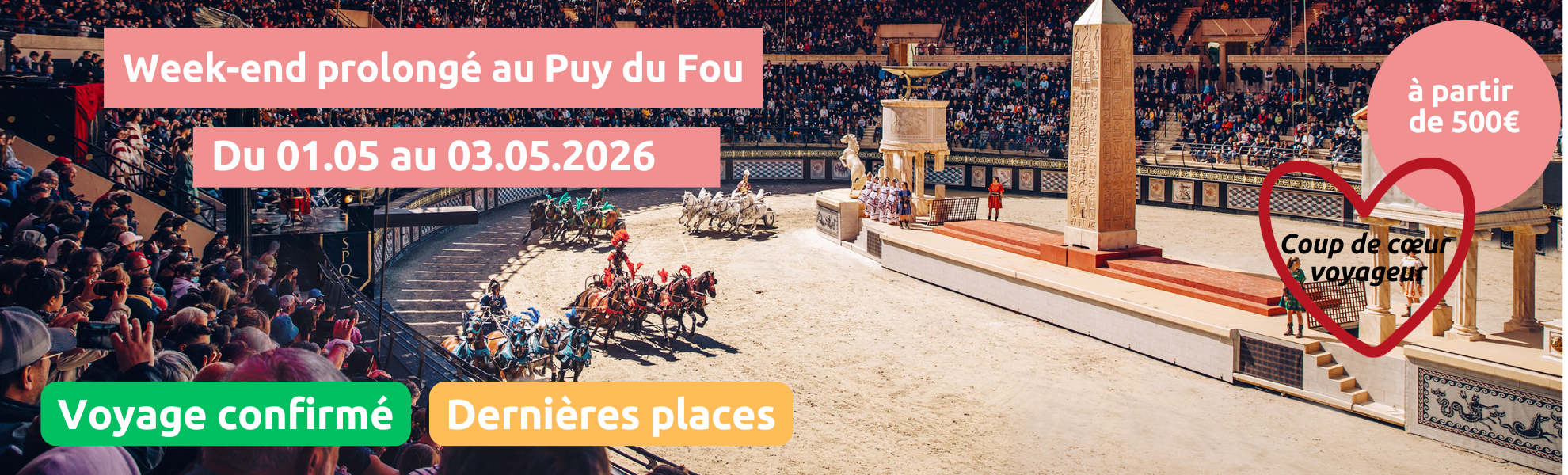 Aperçu rapide Réserver Vendredi 01/05/2026 Week-end prolongé au Puy du Fou au sein de l'hôtel Mercure La Roche-sur-Yon ✔️CONFIRMÉ Prix de vente conseillé : Ancien prix : Maintenant : A partir de €500,00